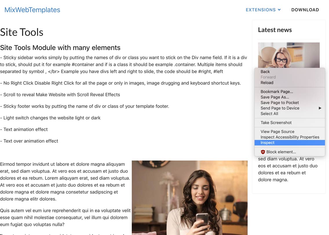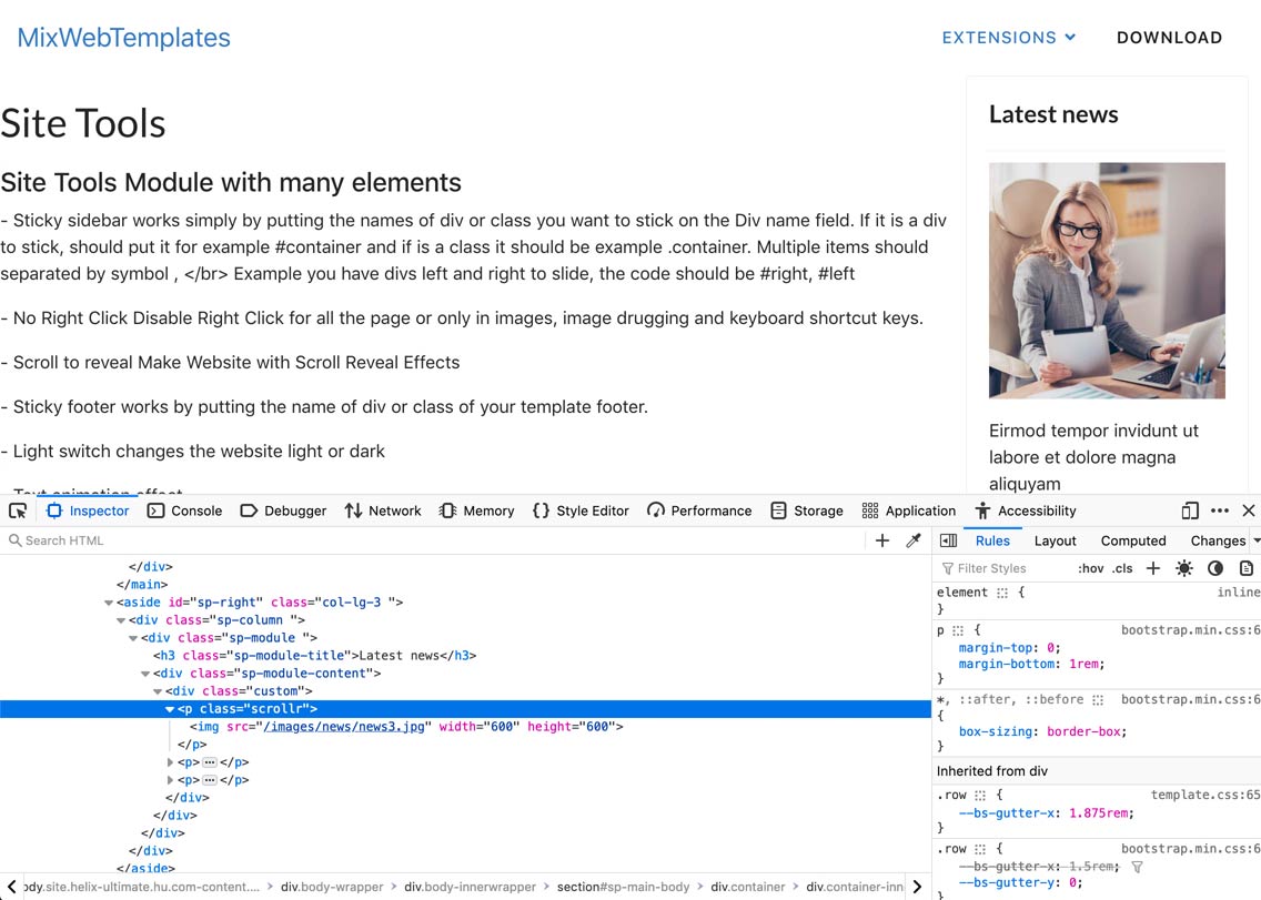 In this documentation is explained how to use Site tools module, for Sticky Sidebar and Scroll reveal