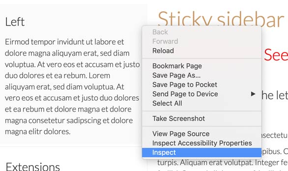- 1- In your site right click and select the option Inspect.