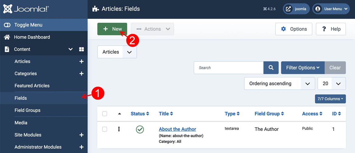 Once the categories are created, go in Content - Articles and click in "New" green button.