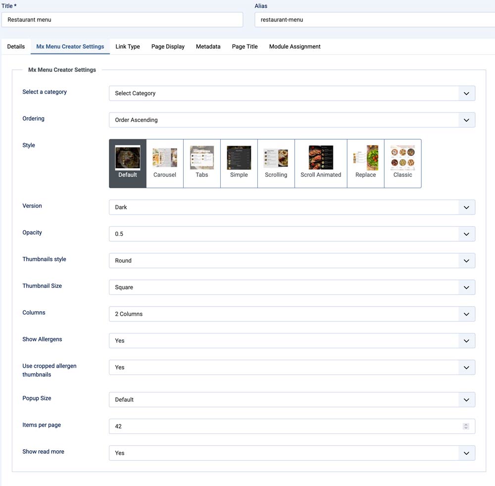 Mx Menu Creator is a powerful Joomla component designed for creating and managing restaurant menu items. It provides an intuitive interface for administrators to add items with images, descriptions, allergen, pricing, and categorization, while offering flexible display options for the frontend.